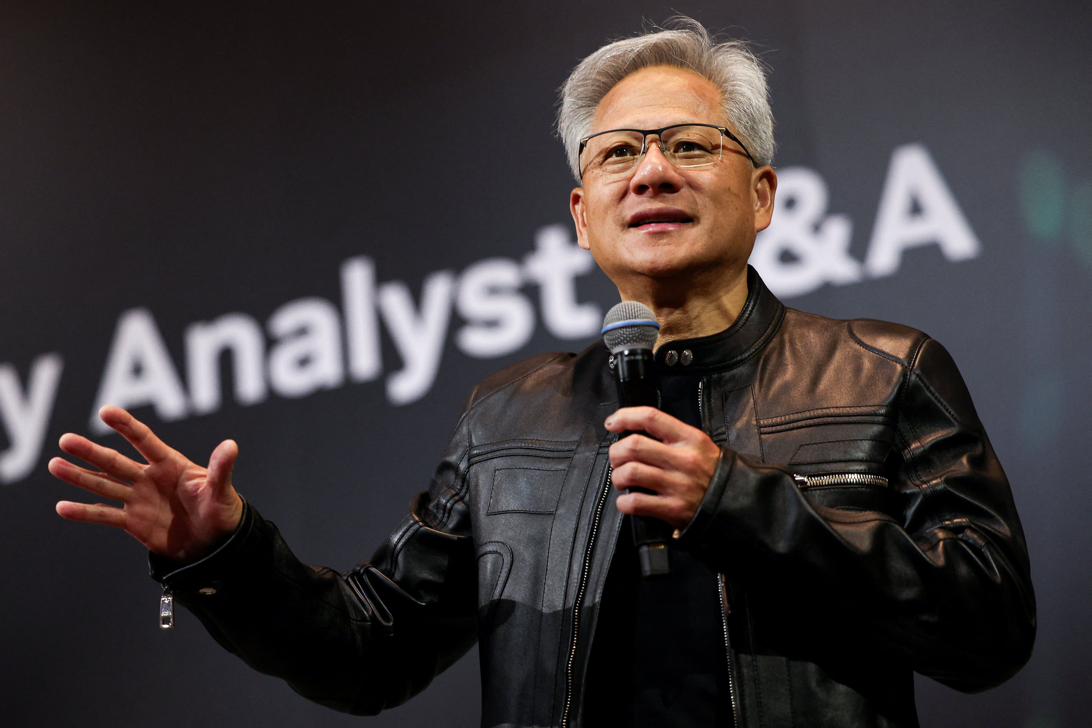 Jensen Huang, co-founder and CEO of Nvidia Corp., speaks during a news conference in Taipei on May 21, 2025.